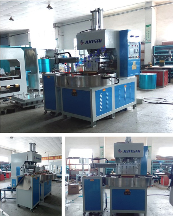 4、高周波熔斷機(jī)振蕩頻率符合標(biāo)準(zhǔn),由高Q值真空電子管自激振蕩器產(chǎn)生高頻電磁場(chǎng),使加工塑膠在上下電極間的高頻電場(chǎng)內(nèi),使其分子產(chǎn)生劇烈運(yùn)動(dòng)摩擦,在模具的壓力下得到其熔接效果。自動(dòng)轉(zhuǎn)圓盤高周波熔斷機(jī)采用H型龍門結(jié)構(gòu),左右雙向自動(dòng)滑臺(tái),往返連續(xù)推送模具。