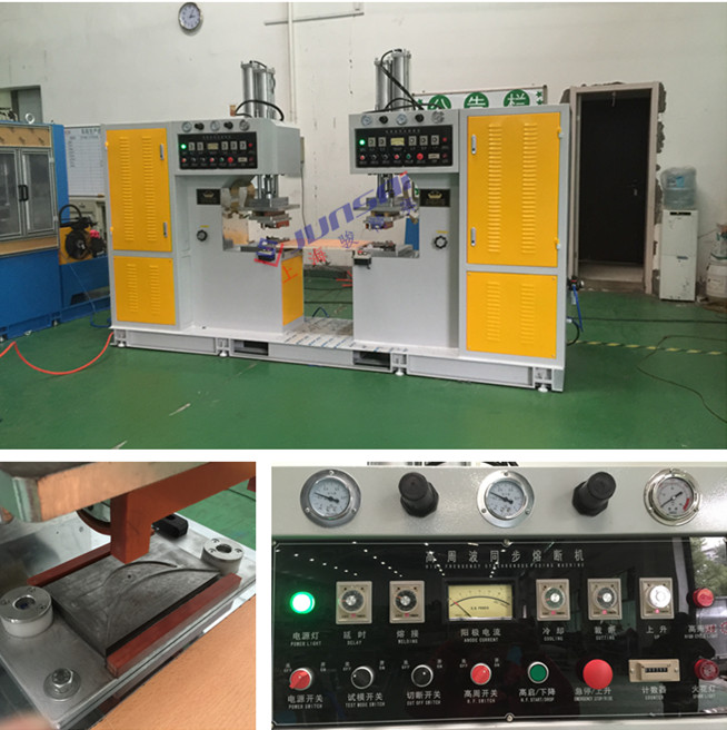 高周波熔斷機廣泛用于吸塑卡紙包裝、PVC、PETG、GAG、EVA、PEVA、TPU、PU合成革材料等均可同時完成熔接及切斷之作業!既在同一次加工中,一次完成熔接及切斷作業。